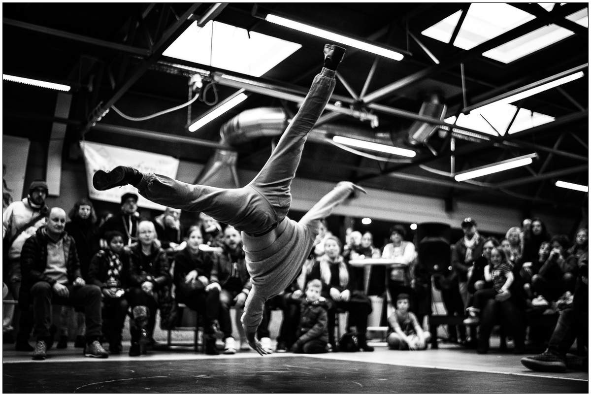 L'instantané est bien là mais l'ensemble est assez perturbant à la lecture. Le plafond avec toutes ces zones claires, toutes ces lignes, les spectateurs trop présents, pas pour le spectacle mais pour l'image et enfin cet excès de contraste nuisent à l'ensemble et c'est bien dommage.