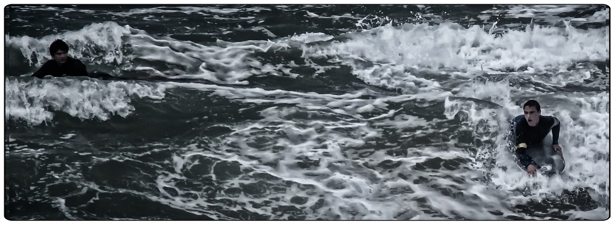Je ne comprends pas pourquoi ce format pano, quelques vagues supplémentaires derrière les surfeurs auraient été les bienvenues!
