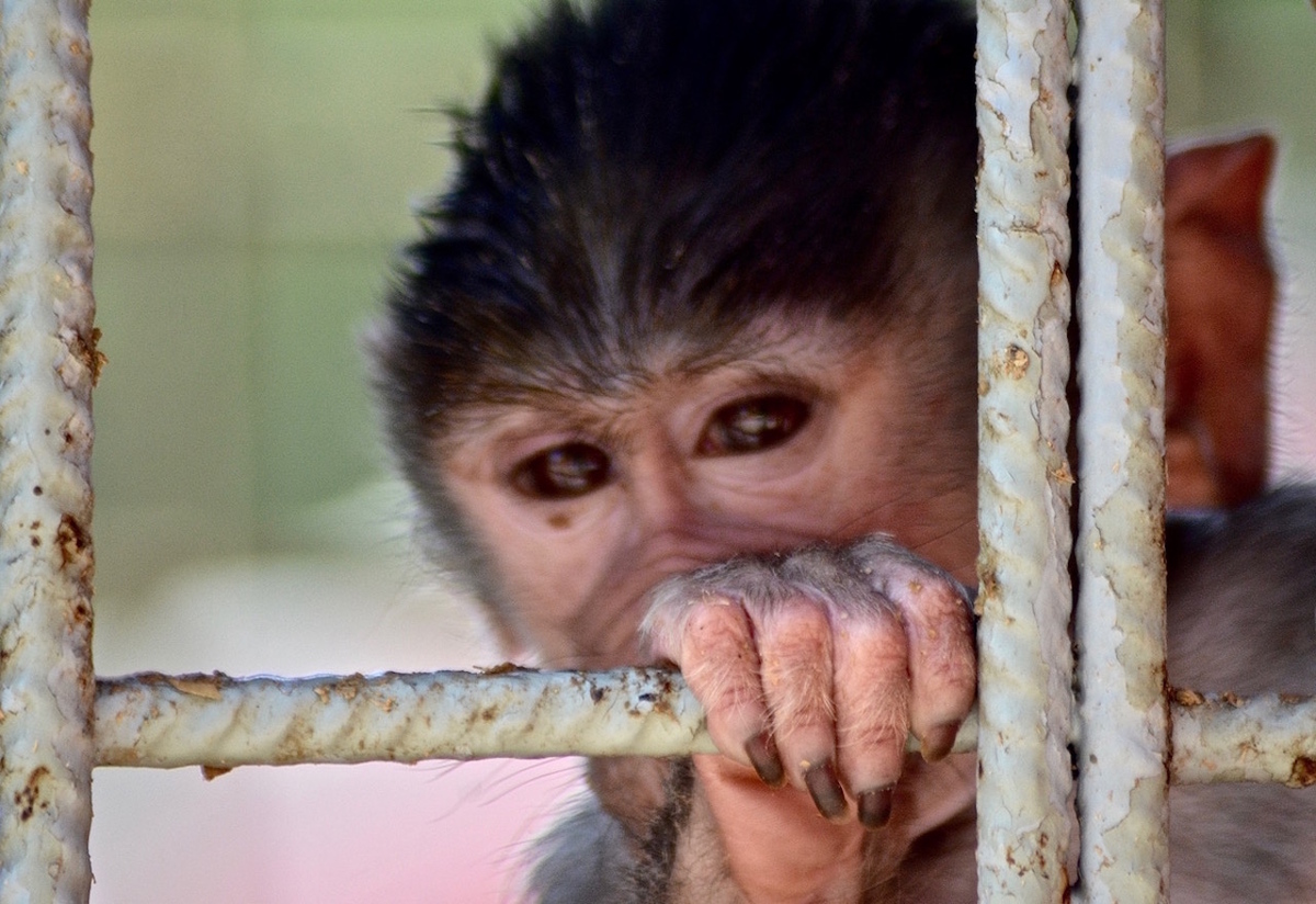 Impressionnant ce regard presque humain, ces doigts agrippés à une grille rouillée ! Photo qui parle.