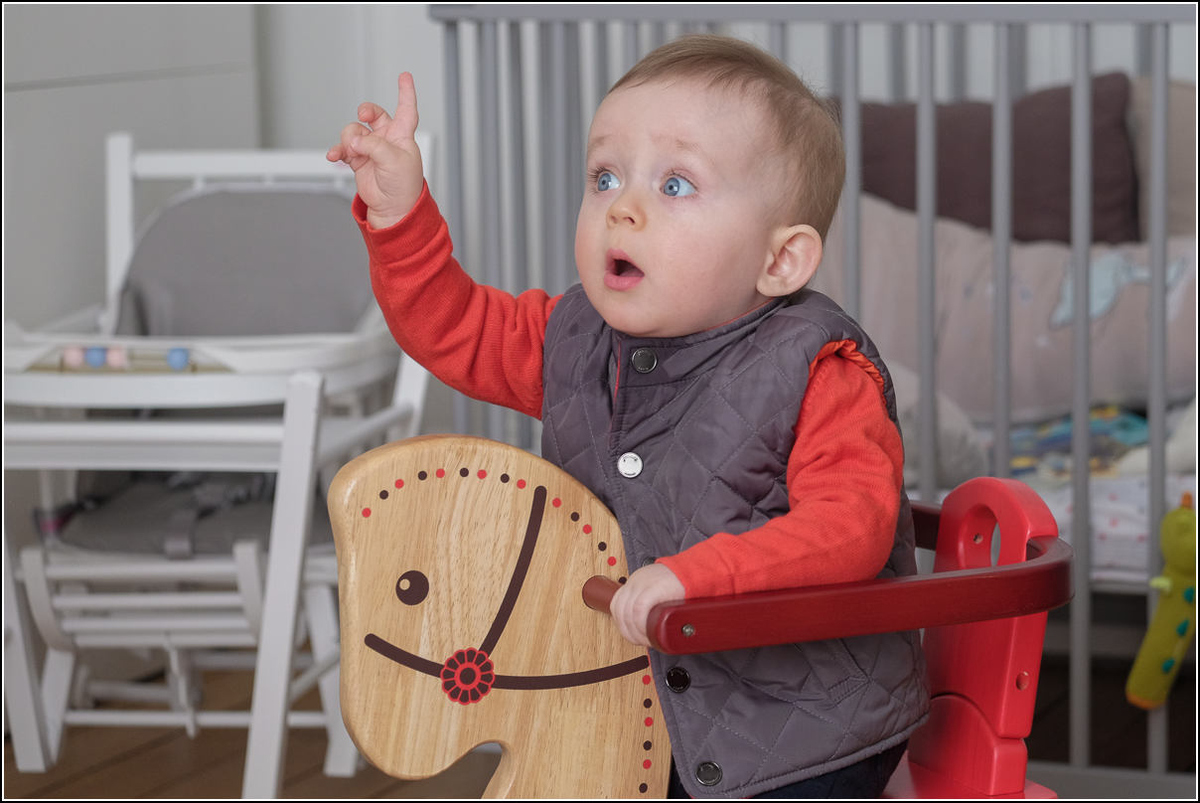 Super expression du petit, doigt levé, jolies teintes douces comme sur la précédente.
