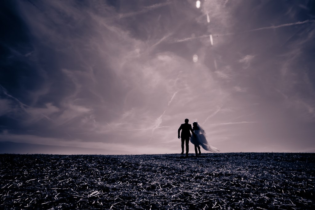 Explication de cette photo...Le mariage est un voyage (normalement vers la lumière). La terre aride en 1er plan représente les années de doutes, de "sécheresse", la terre vide ou à semer.. Puis à 2, main dans la main, on avance vers les sommets, vers la lumière..et le mariage..Voilà ma traduction de cette photo.