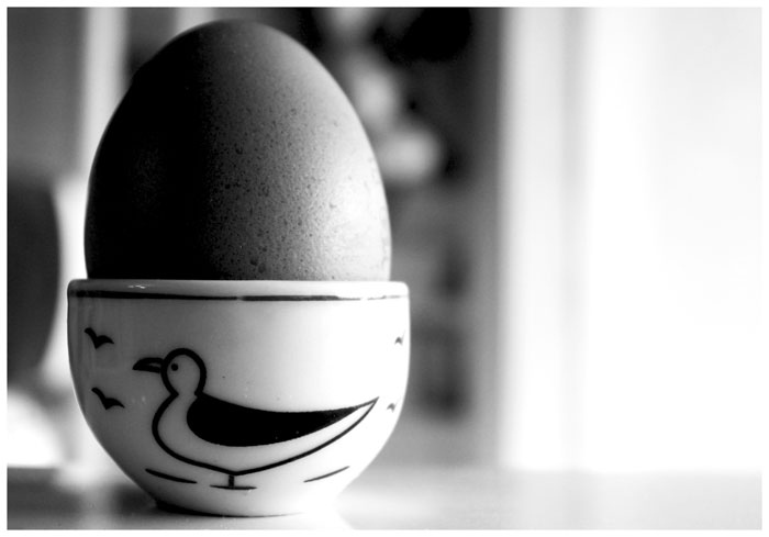 Bonne idée et bon titre, mais ça manque un peu de netteté sur l'oeuf et le côté droit est un peu lumineux.