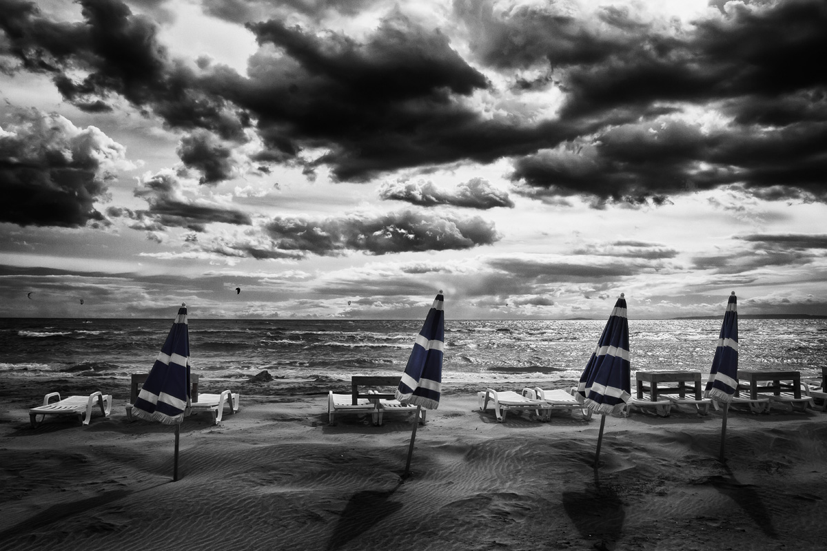 Trop de contraste pour moi. Tu te retrouves avec des noirs bouchés. Je me serai contenté des 3 parasols (pas celui à droite) et me serai mis de face si possible. Voilà pour moi.