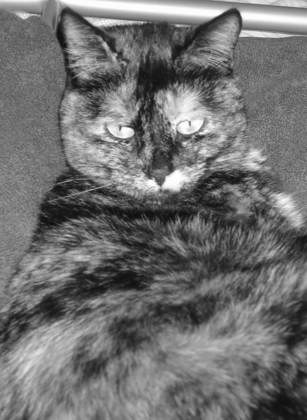 Le cadrage ne convient pas vraiment, trop de flou au premier plan et la pose du chat, qui à l'air très beau d'ailleurs, n'est pas à son avantage. Attention aussi à l'arrière plan, pas très esthétique la barre du fond, et à la lumière trop dure, due au flash.