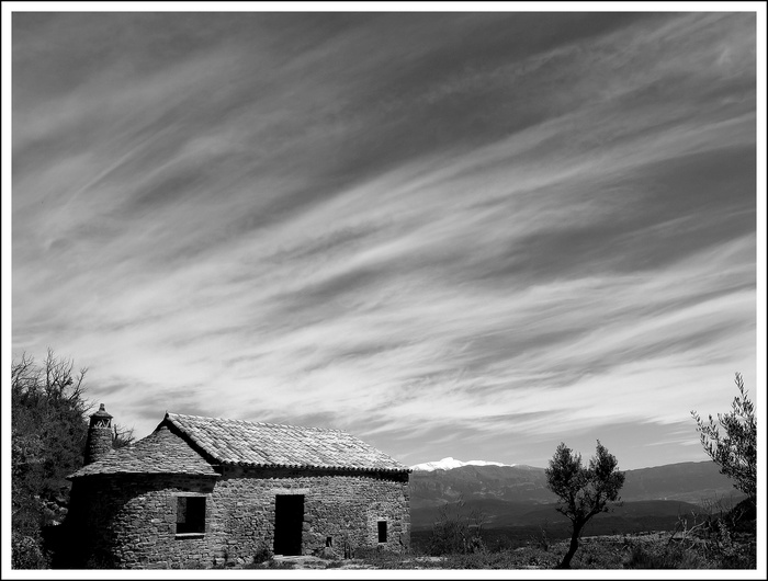 très beau nb et ciel tourmenté superbe. c'est coupé un peu trop bas pour moi, on aimerait je pense voir la base de la maison.