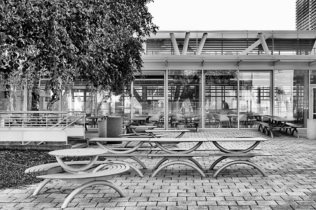 Le noir et blanc convient parfaitement à ce décor graphique qui aurait certainement plu à Jacques Tati.