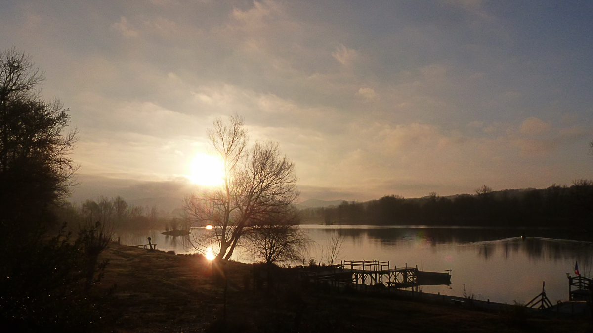 on dirait que la saturation a été un peu poussée. il y a un flare arc-en-ciel juste au dessus du ponton et un autre sur le reflet du soleil.