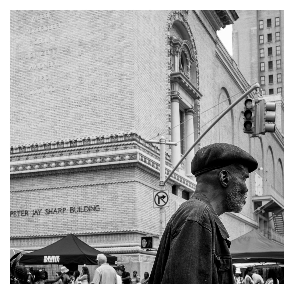 Il passe sans un regard , enfermé dans ses pensées, imperméable à ce qui se passe aux alentours. La flèche directionnelle semble diriger ses pas vers une destinée qu'il ne maîtrise pas.