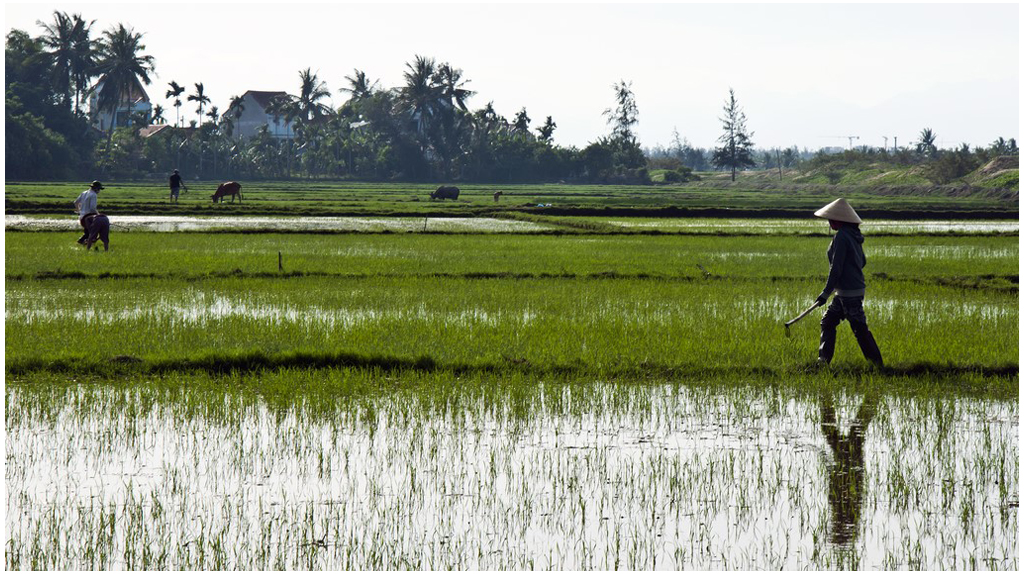 En ce qui concerne cette photo elle à été prise sous le dur soleil de Hội An et c'est pendant une balade en scooter que je vais vu des travailleurs, j'avais de la peine pour eu car il fesait pas loin de 45°