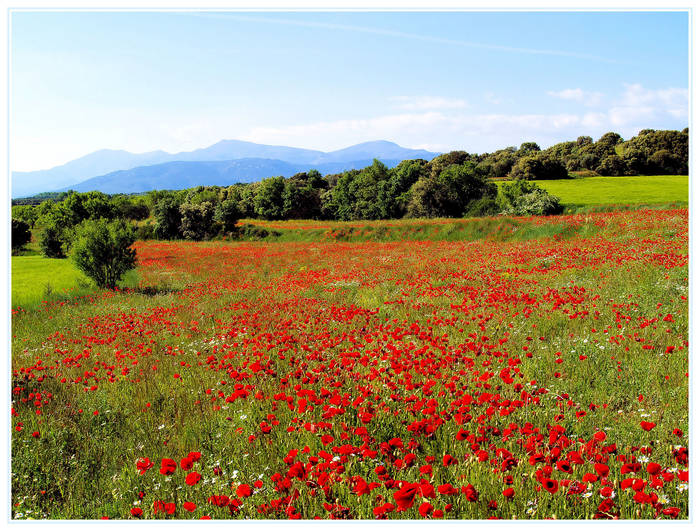 C'est effectivement un beau paysage avec toutes ces fleurs au premier plan qui donnent de la profondeur, mais pour le coup je trouve les couleurs un peu trop saturées, surtout dans l'herbe.
