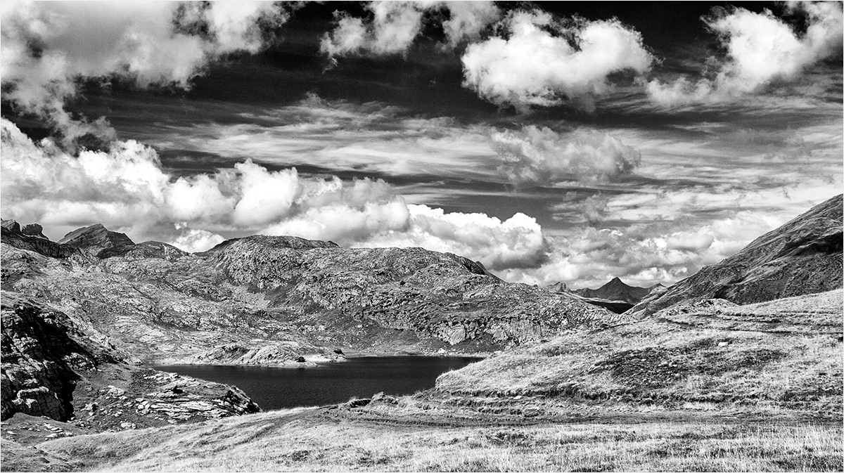 L'intérêt c'est le ciel, je couperais le bas à hauteur du 1 lac. Il te reste l'ouverture sur le second guidant le regard et être ébloui par ces nuages mis en valeur par une belle tonalité