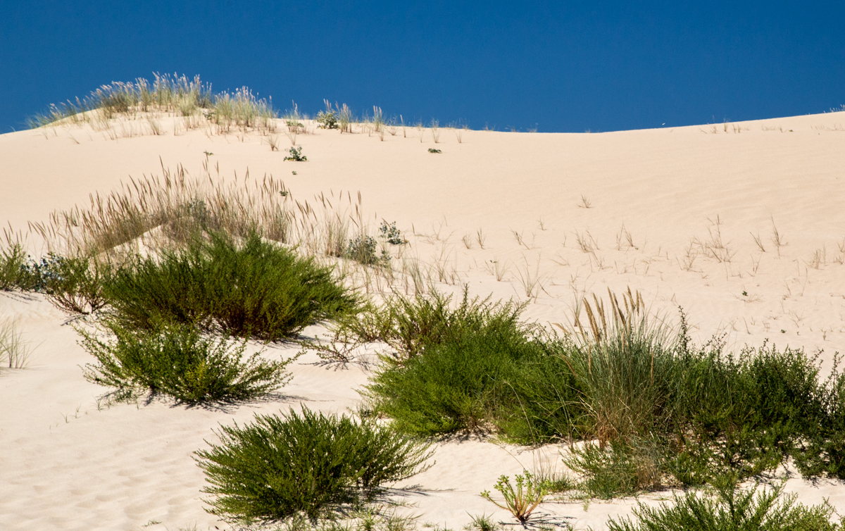 Et la longueur de ta focale alliée à ta distance par rapport au premier plan a pris le pas sur ton ouverture, ce qui fait que les herbes en haut de la dune sont floues.