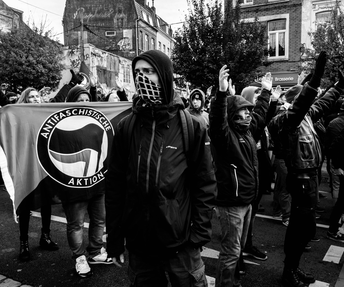 Je ne suis pas spécialiste de ce genre de photos mais pour moi, c'est bien capté. Le drapeau permet de situer l'action en plus. Et j'aime ton noir rt blanc.