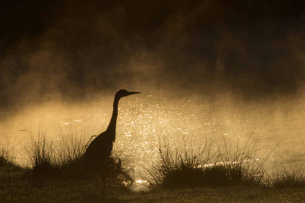 heron dans la brume