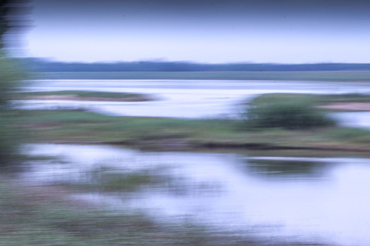 Photo prise en voiture ou dans le train je suppose ? j'aime assez les couleurs, la lumière et l'ambiance ; il manque peut-être quelque chose, un oiseau, un humain ou une barque !