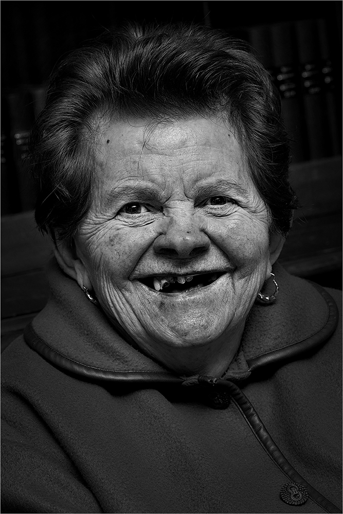 Beau portrait bien réalisé . On ressent vraiment la bonne humeur de cette vieille dame qui aurait bien besoin d'un bon dentiste