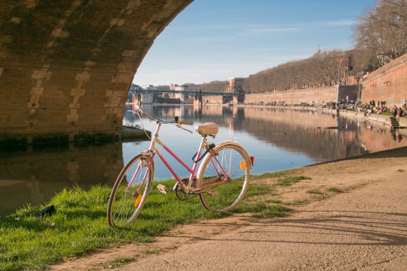 En fait, il y avait un couple d'amoureux qui se reposait au bord de la Garonne et qui avait garé ce vélo rose, je voulais prendre cette vue sous le pont avec ce vélo en premier plan pour rendre la photo moins fade... Sinon, je ne suis pas spécialement fan de vélo