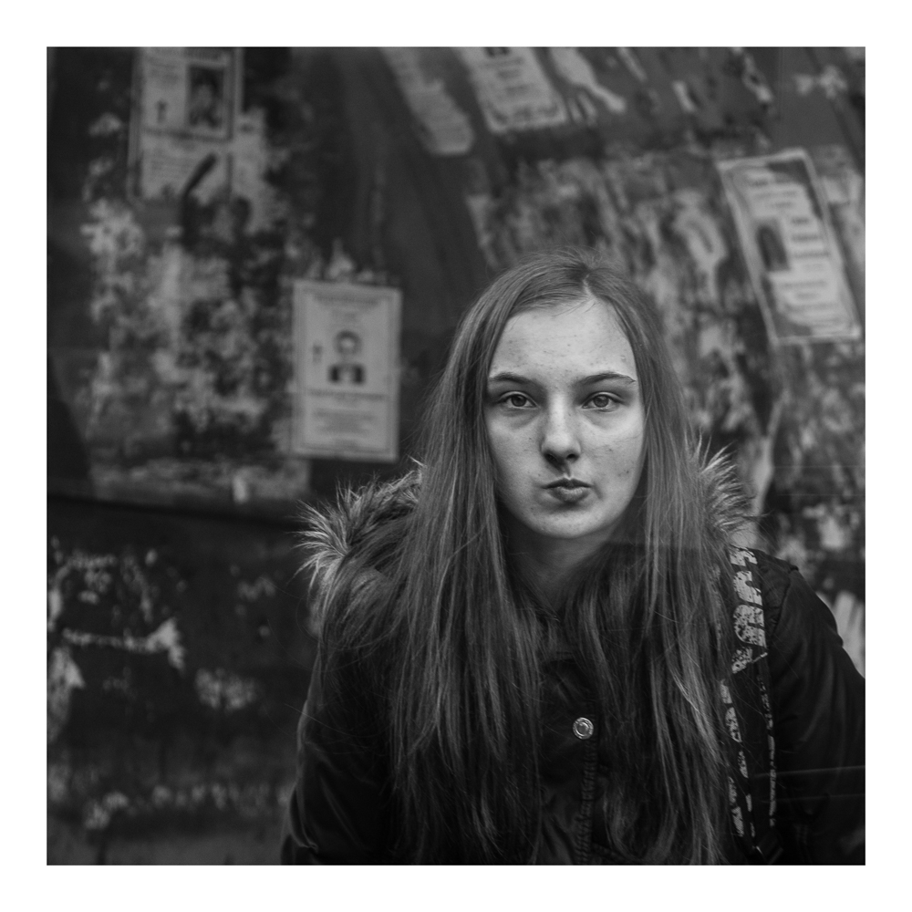 Reflet d'une jeunesse désabusée. La moue est en accord avec le décor où s'accrochent désespérément des portraits appelant à je ne sais quelle révolution. Cette jeune fille leur tourne le dos avec une froideur du regard qui vous transperce. Au fond d'elle même, plus d'espérance, simplement devoir surmonter l'âpreté du chemin qui se profile devant elle.