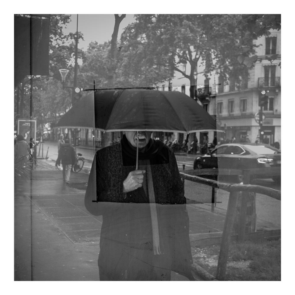 Moi j'aime bien cet homme écrasé par son parapluie