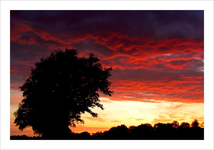 bien rouge et bien contrasté avec l'arbre en ombre chinoise
