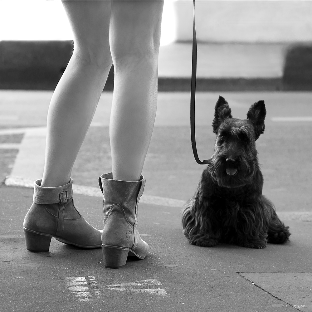j'aime l'étonnement du chien qui semble regarder le photographe , semble presque se moquer du comportement et l'attachement de l'humain à l'encontre de sa communauté dans la vie aujourd'hui ...