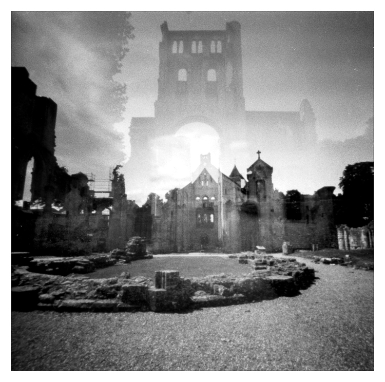 Superposition de deux prises de vue au sténopé avec de la TriX.