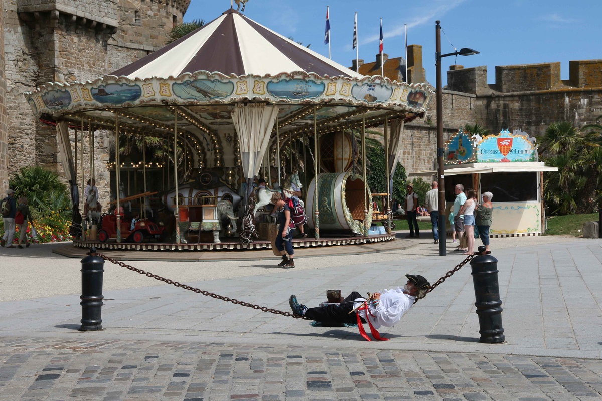 beau recadrage de deuce, pas banal, ce personnage qui fait l'équilibriste sur une balançoire métallique.