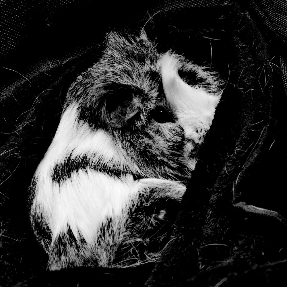 C'est le cochon d'inde de ma nièce, elle le met dans cette couverture pour lui faire des calin et c'est vrai qu'il aime bien se planquer dedans, ton titre est une bonne idéee MLZ.