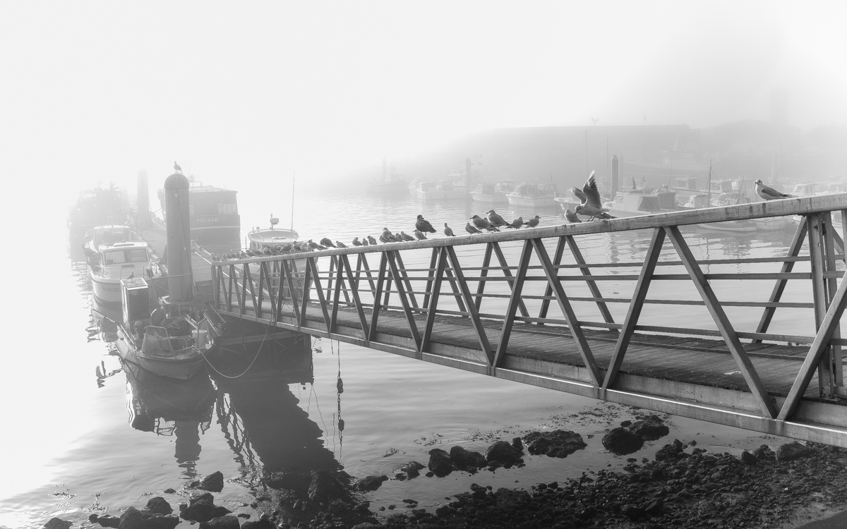 Port sous brume.