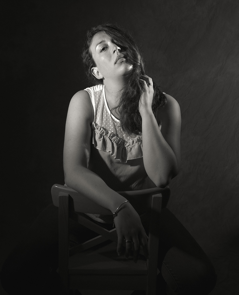 Je lui aurais demandé de moins cacher son oeil mais ça fait partie de la pose cool.Le bas me chagrinait un peu et j'ai mis plus de lumière