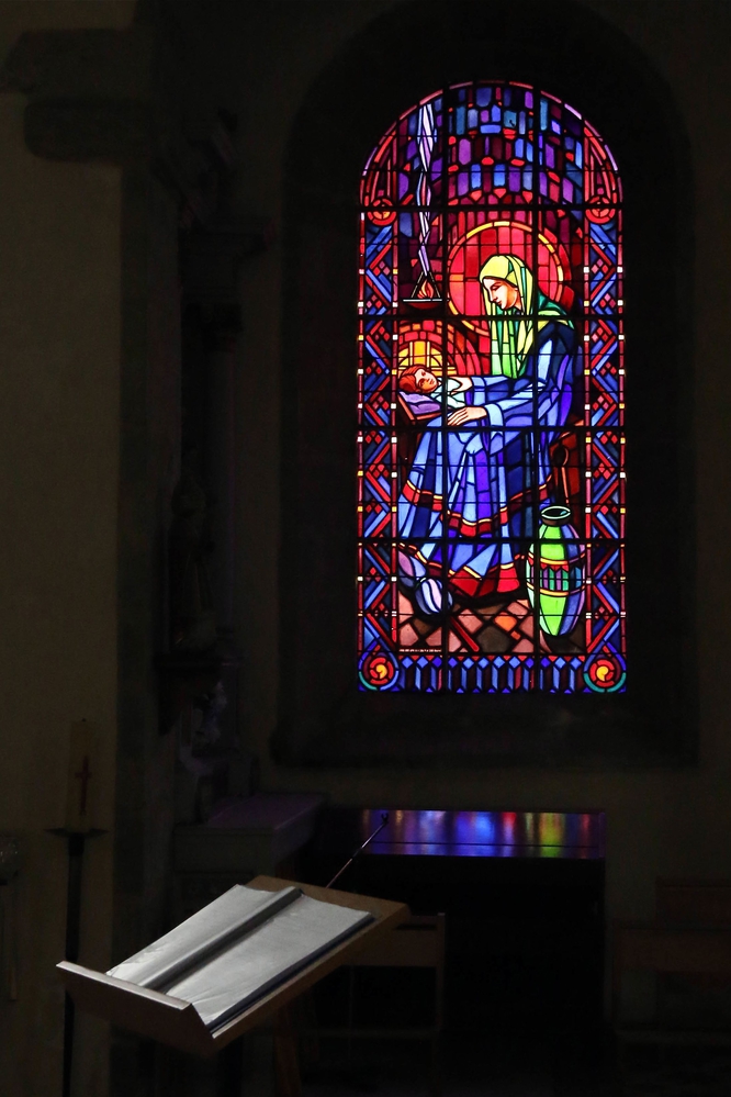 J'adore les photos dans les églises, les reflets , les vitrails, la paix qui y règne