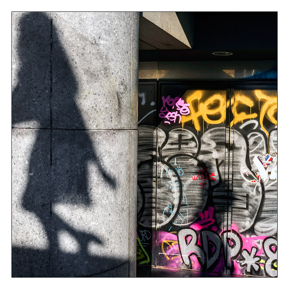 j'ADORE avec un grand A et sans restriction. L'ombre du pied talonné est extra. Voilà un graff utilisé avec génie. SUPER et c'est rare quand je m'enthousiasme autant. Bravo à l'auteur(e)