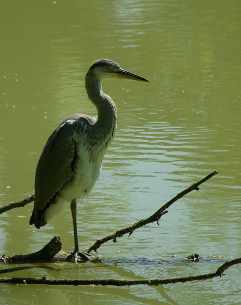 Beau bonhomme que ce Héron cendré (immature d'après-moi). Toutefois une curieuse lumière trop verdâtre pour moi... (contre-jour).