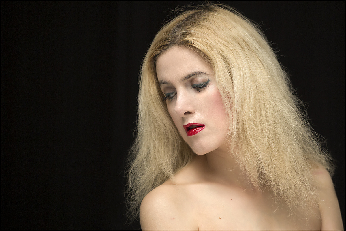 Etant habitué à la qualité habituelle de tes clichés, je suis surpris ici par le manque de soin apporté à l'application du rouge à lèvres, à moins que ce ne soit à dessein...