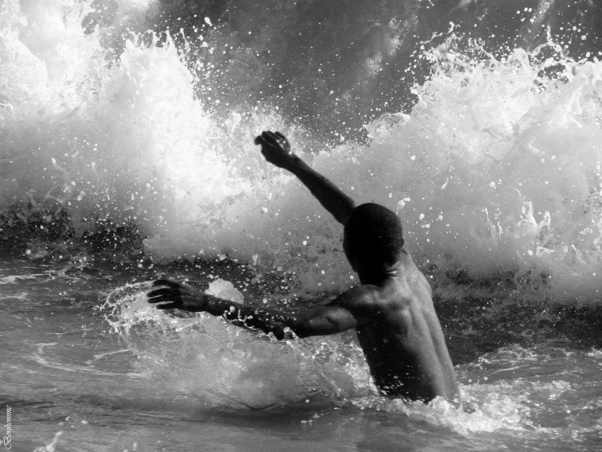 en position, prêt à affronter la vague, la définition n'est pas très bonne, peut-être compression.
