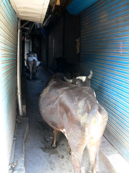 On peut vraiment tout penser avec une image. Celle-ci est prise a Delhi à 7h du matin... Aucune d'elle ne finira dans une assiette. Ni dans un champ d'ailleurs. Le premier plan est éclairé par le soleil. J'ai volontairement joué sur ce soleil et le temps d'expo pour avoir ce coté un peu décallé et le flouté de la bète.