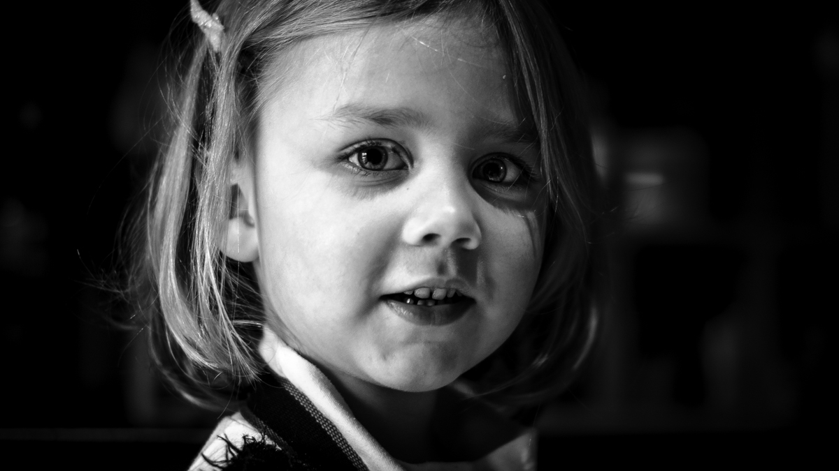 C'est une chance pour toi La complicité est parfaite. Bon N&B : Ses cheveux accrochent bien la lumière, clair obscur pas trop marqué. Il y a de la douceur.