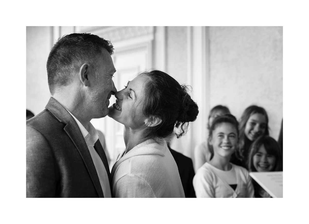Cette version permet une lecture différente que la précédente.Je me serai légèrement décalé sur la droite afin de mieux percevoir le visage du marié.Bonne restitution du moment.