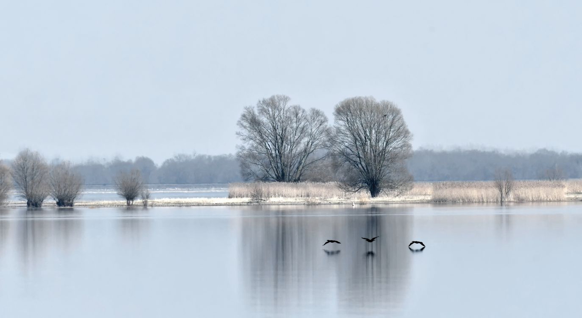 J'aime beaucoup ces couleurs pastelles. Je connais tres bien et ce sont les couleurs de la haute marne En faisant un large panoramique en supprimant au moins la moitié du ciel cela recentre le regard sur les oiseaux et les reflets dans le lac