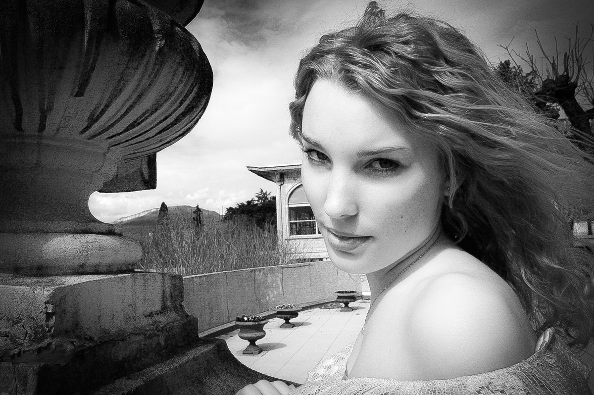 Pris au grand angle ? ça déforme un peu ! j'aime bien les courbes de l’épaule, du front, du visage avec les courbes du vase, la même chose avec les cheveux et les stries du vase