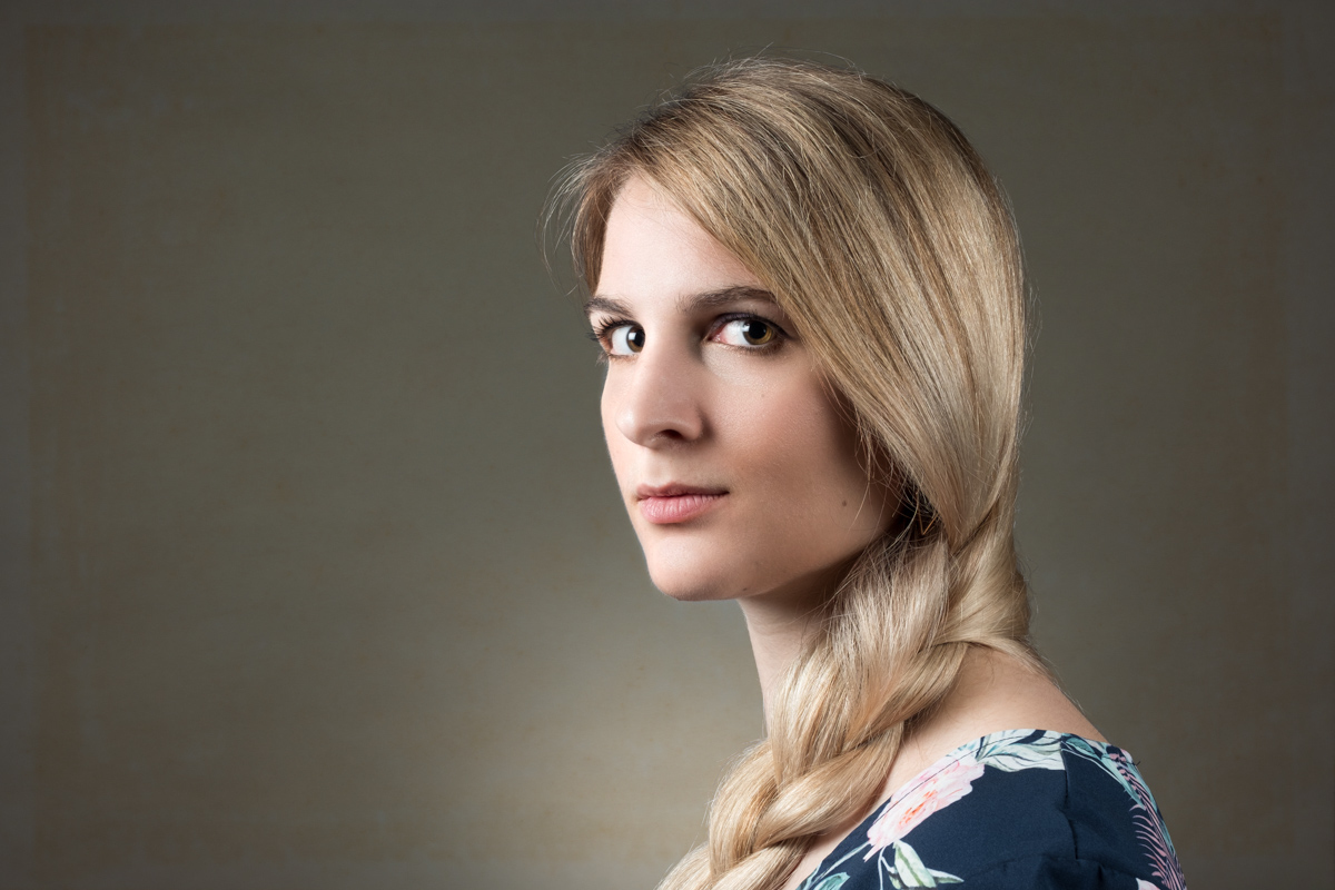 Joli portrait simple et efficace,à mon goût un peu trop d'espace devant ,je me permets une tout autre proposition consciente qu'elle ne respecte pas les fameux codes