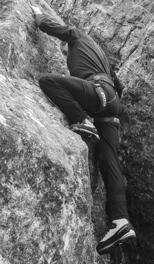 J'aurais vu un cadrage plus large, qui donne à voir la verticalité et le chemin à escalader...