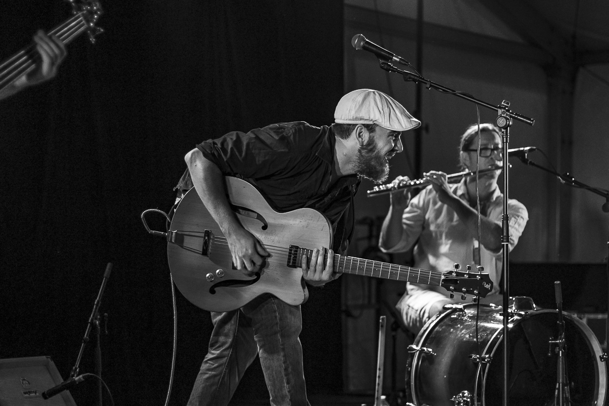 Une superbe ambiance de swingue ! Mais plusieurs élément me dérange un peut. Surtout le manche de la basse et la main en haut à gauche, le file du micro sur la flutiste et le micro au dessus du guitariste ainsi que le micro et le (haut parleur?) en bas à gauche.