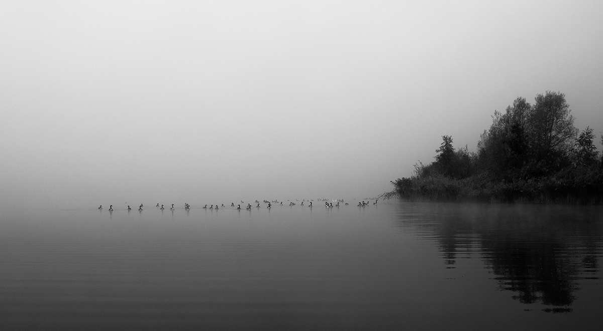 bernaches dans la brume