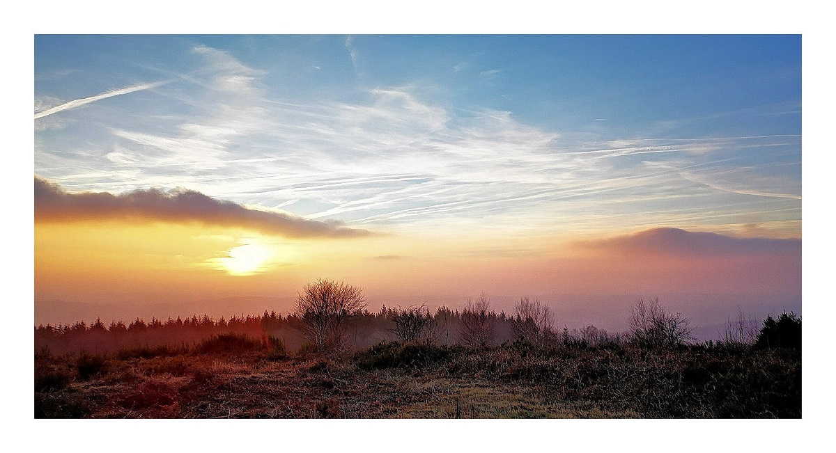 Le jour prend fin peu à peu. Dans la brume et le vent glacial, le soleil se couche et nous offre un magnifique tableau.