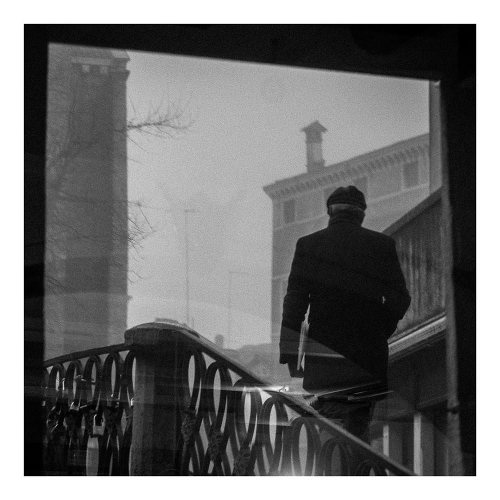 Ici encore, un reflet, une barrière, un homme de dos.... et au lecteur d'imaginer ce qui n'est pas montré, mais juste suggéré.