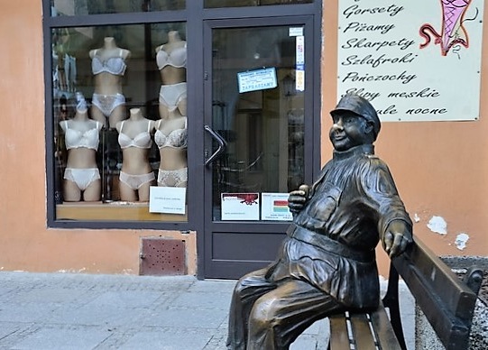 Le contraste entrela vitrine et ce petit bonhomme paisible me plait bien...