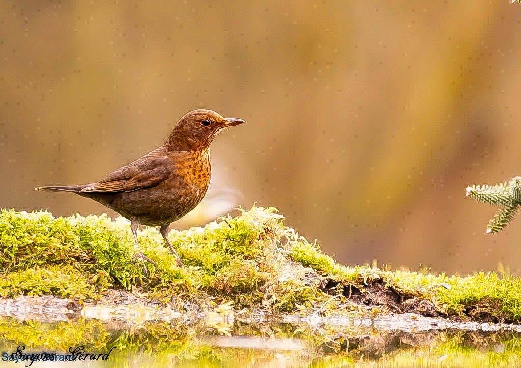 Une belle harmonie de couleurs autour de cette grive. Un petit détail à gommer à droite peut-être.