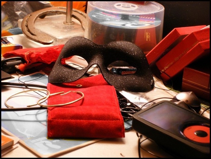 Bien vu les tons rouges et noirs, mais tout ça fait un peu trop fouillis, je trouve.