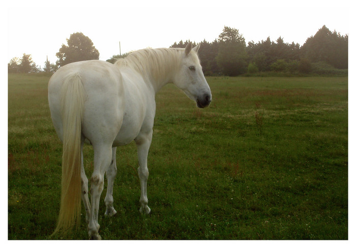 Elle est très belle aussi celle-ci. La lumière est très douce, un vrai cheval de conte de fée.